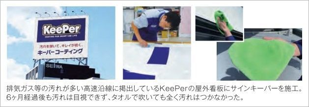 | 2021/11/22 | 弊社にて「サインキーパー」のお取り扱い開始しております。 <サインキーパーの特徴> ①KeePerの自浄効果で汚れを弾いてキレイが続く