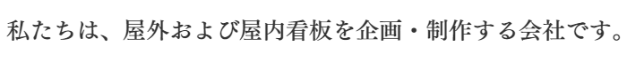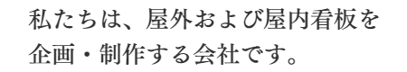 弊社は看板の企画・制作及び発送を全国に行っております。 商売繁盛のお手伝いは勿論、街並みに調和しながらも、人々の記憶に残る、 そんな看街製作のお手伝いをさせて頂きます。 |