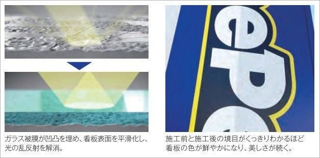 ②看板が驚くほどくっきり鮮やか新品同様の色ツヤが続く