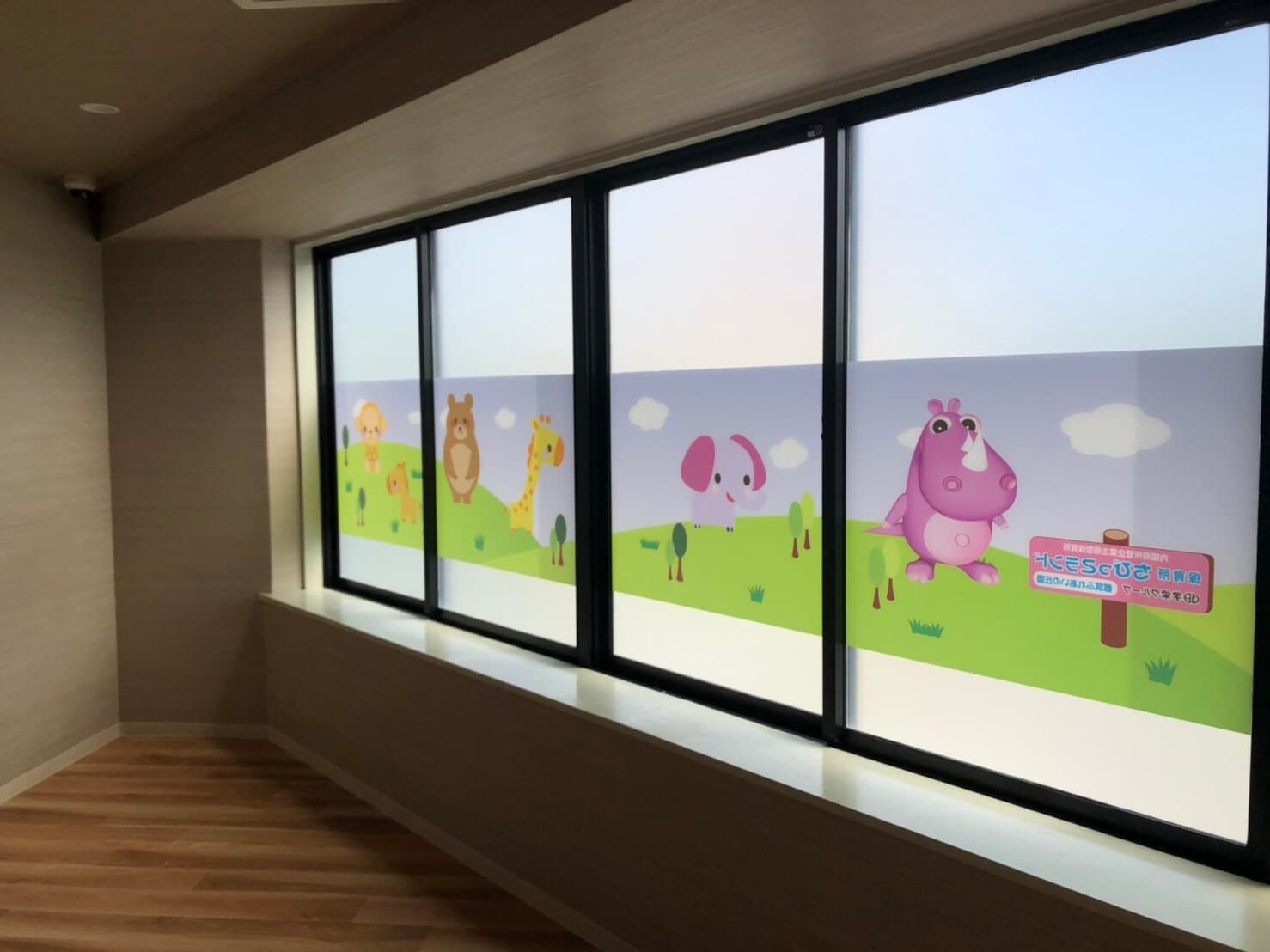 窓ガラスに文字シートなどを貼ります。 最近は、インクジェット出力などで写真などを配置したものを設置することもあります。 窓全面を覆い隠すのが採光などの点でお考えの方は、メッシュタイプのものもあります。