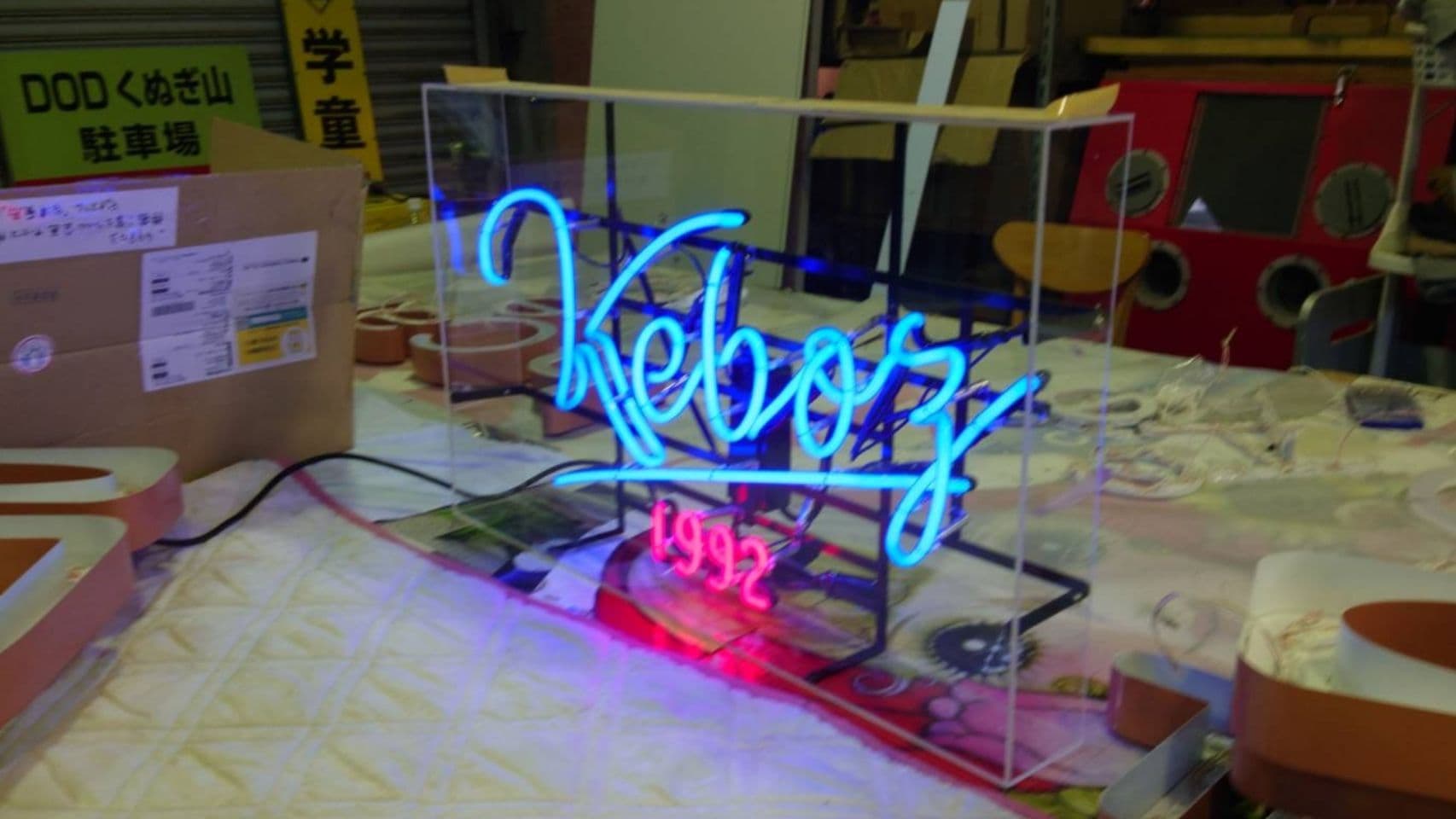 ネオン管を使用した看板です。ネオン管で文字を成形したネオンサインは、店舗のインテリアやディスプレイ用としても採用されています。バックネオン式、内照式など種類も多彩です。