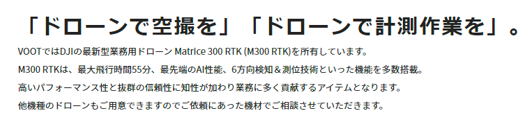詳細はドローン・映像事業 VOOTサイトをご確認の上、お気軽にお問い合わせください。